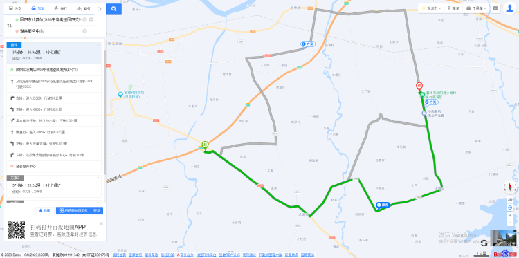 1. 从凤阳东收费站(S95宁洛高速凤阳直线出口)到G329行驶550米右转