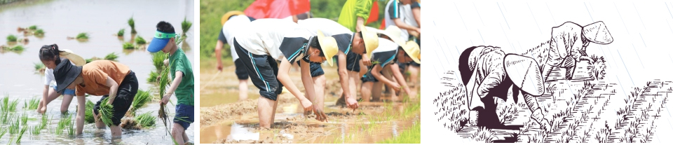 通过讲解、示范、分组作业、集体总结的形式,学生了解水稻的种植技术、历史发展、生长周期以及对于国家食品安全的重要意义。作为老百姓口粮,对于百姓生活的重要性,培养观察、实践、总结以及解决问题的能力。