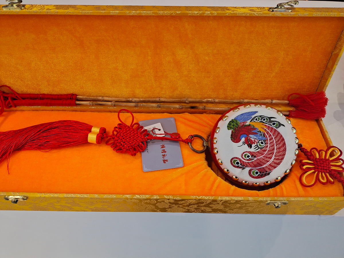 商品名称:精品花鼓,商品类型:文创,商品单位:个,商品规格:长55cm宽14cm高8CM,商品售价:150;