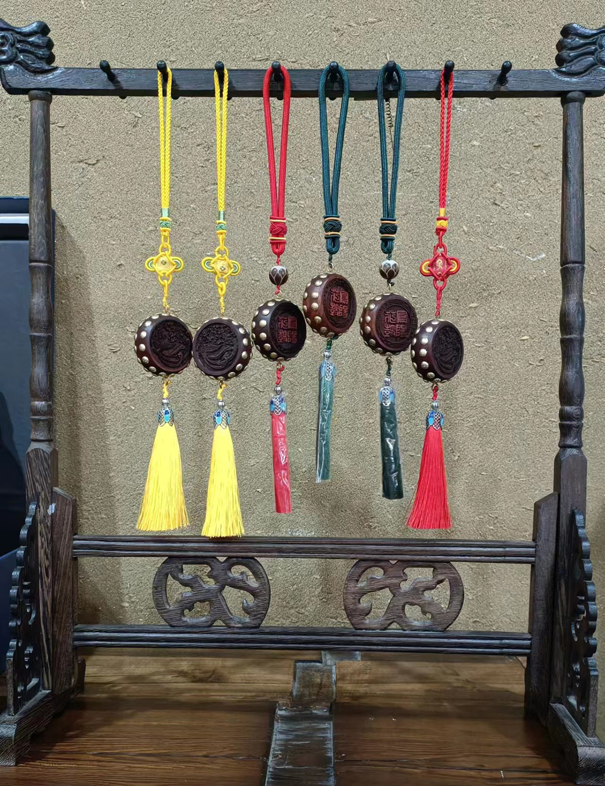 商品名称:紫檀木花鼓挂件(小),商品类型:文创,商品单位:个,商品售价:35;
