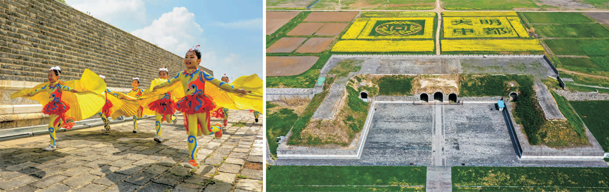 位于凤阳县城南七公里处,明皇陵是明朝开国皇帝朱元璋为其父母和兄嫂而修建,主要有皇城、砖城、土城三道,殿宇、房舍千余间,陵丘、石刻群等,被国务院列为第二批全国重点文物保护单位。