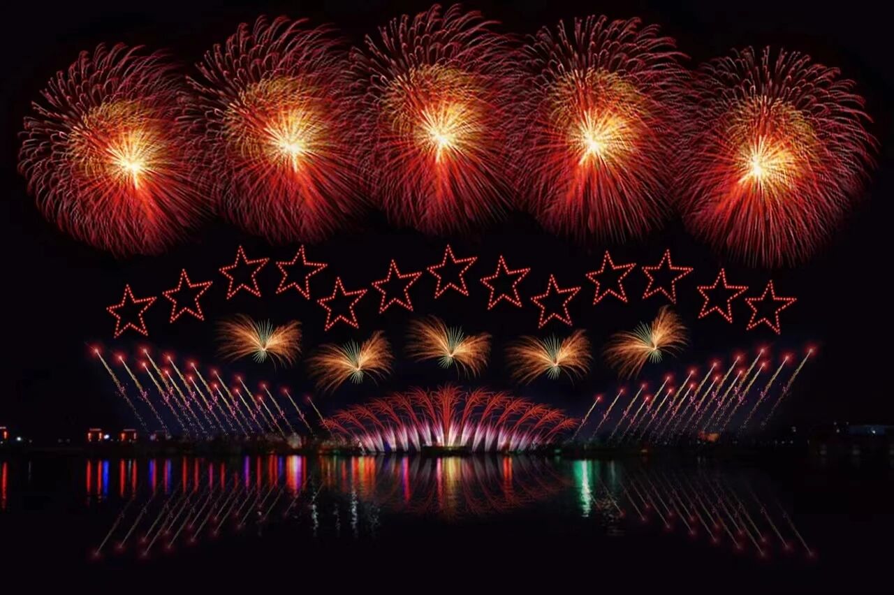 烟花下,让我们万人歌唱《我和我的祖国》音乐与焰火融合,全方位满足感官欲