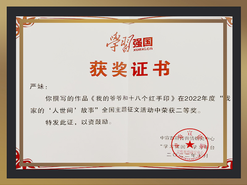 2022.10“我家的‘人世间’故事”主题征文 二等奖 (“学习强国”学习平台)