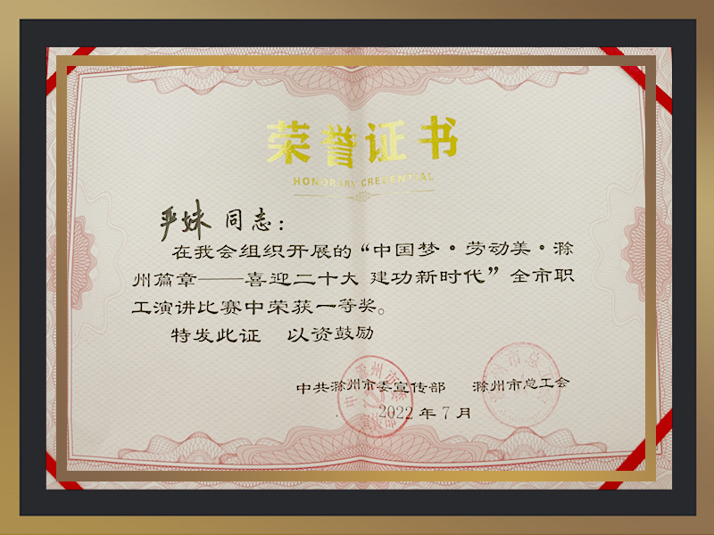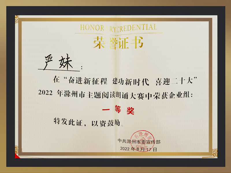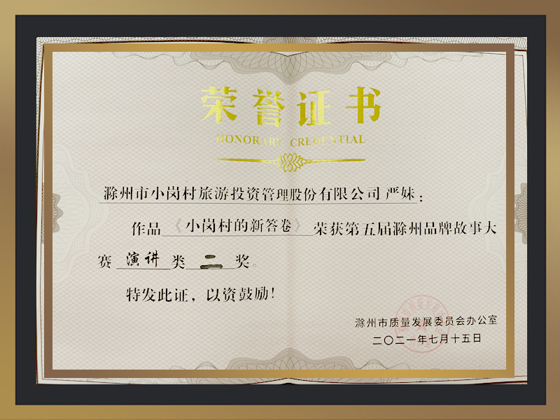 所获荣誉:2021.7第五届滁州品牌故事大赛二等奖(滁州市质量发展委员会办公室)