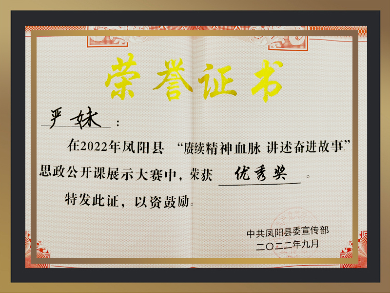 2022.9赓续精神血脉 讲述奋进故事思政公开课展示大赛 优秀奖 (县宣传部)