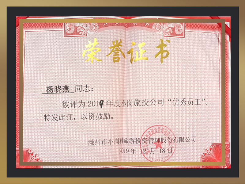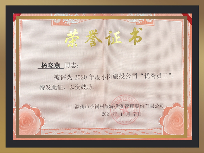 2019年至2020年度被评为小岗旅投公司“优秀员工”。
