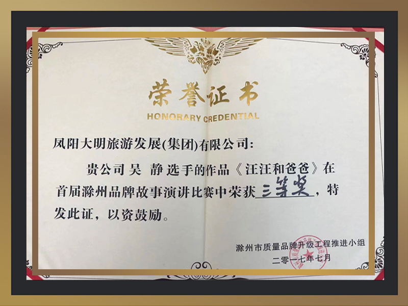 所获荣誉:第五届品牌故事大赛滁州赛区决赛小岗旅投吴静《汪汪和爸爸》荣