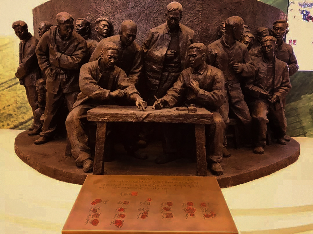 1978年12月,安徽省凤阳县小岗村18位农民冒着生命危险,在一份生死契约上摁下鲜红的手印,由此掀开了中国农村改革的序幕,推动了家庭联产承包责任制的出台,助力中国改革向纵深推进。小岗村因此被视为中国农村改革的主要发源地,在中国改革进程中具有重要的历史地位。在四十多年农村改革发展实践中,“敢闯、敢试、敢为人先”的“大包干精神”和“扎根基层、一心为民”的“沈浩精神”经过不断丰富,逐渐沉淀和凝练为“改革创新、敢为人先”的“小岗精神”。